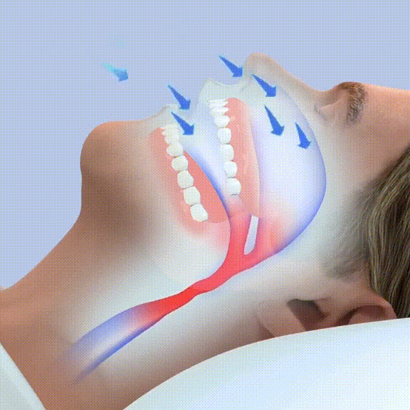 « L’orthèse sur mesure utilisant la technologie d’Optimisation de la Retenue Mandibulaire maintient la mandibule en position avancée, ce qui empêche la langue de reculer et provoque un élargissement des voies aériennes supérieures au niveau du pharynx. »